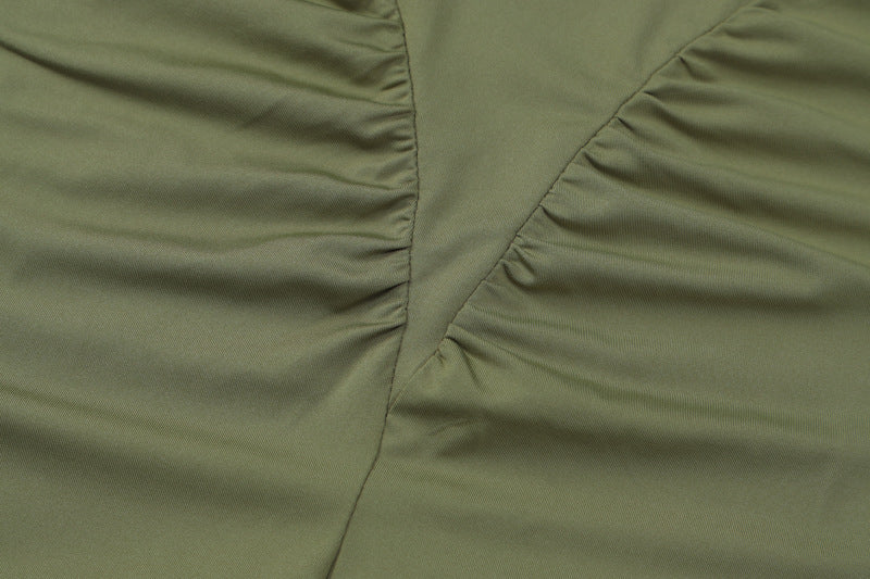 Women's Spring Fashion Style Slim-Fitting Ruffled Solid-color Short-Sleeve Dress