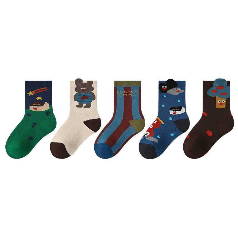 儿童袜子24秋冬批发可爱猫咪波点女童袜子保暖棉质儿童加厚毛圈袜